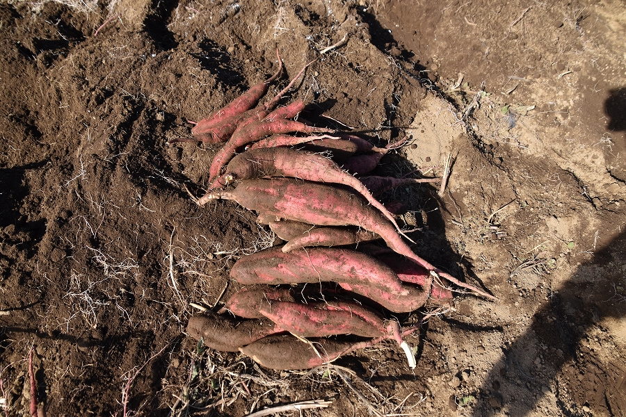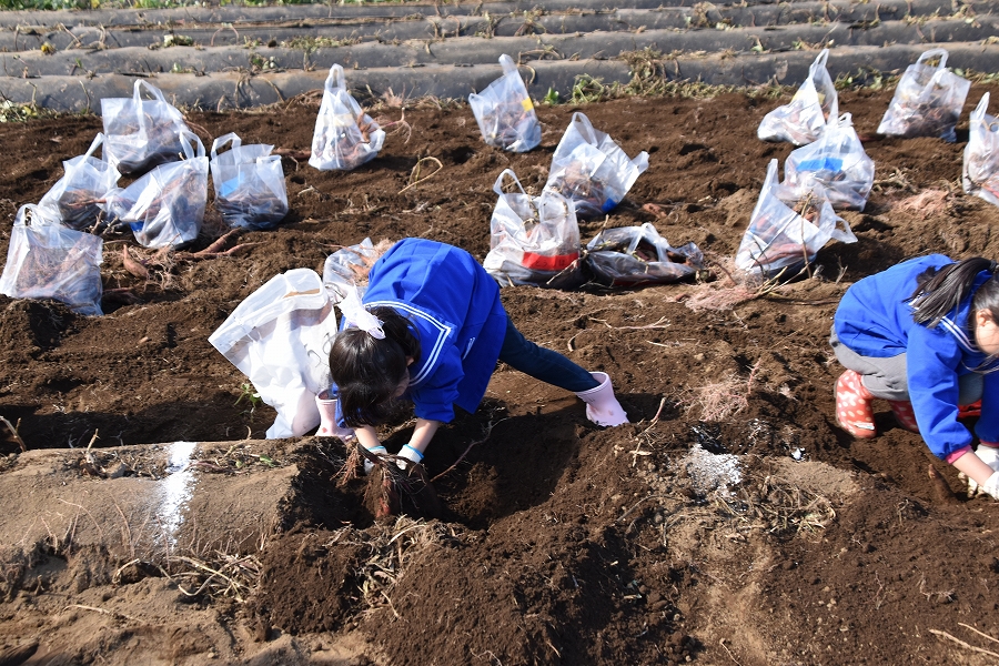 芋ほりが始まると、みんな大きなさつまいもを一生懸命に掘って力いっぱい引っこ抜きました。